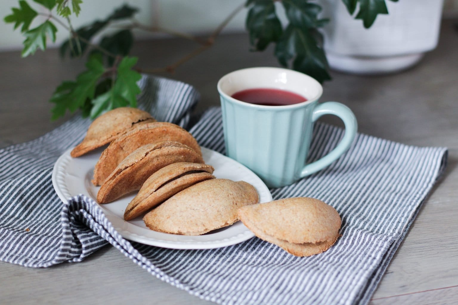 - Apskritimus perlenkiame pusiau ir viršutinę dalį švelniai priglaudžiame prie apatinės. Suspausti nereikia, nes kepant gali sutrūkinėti tešla. Viršų patepame avinžirnių skysčiu ir šauname į orkaitę. Kepame apie 18-20 min.