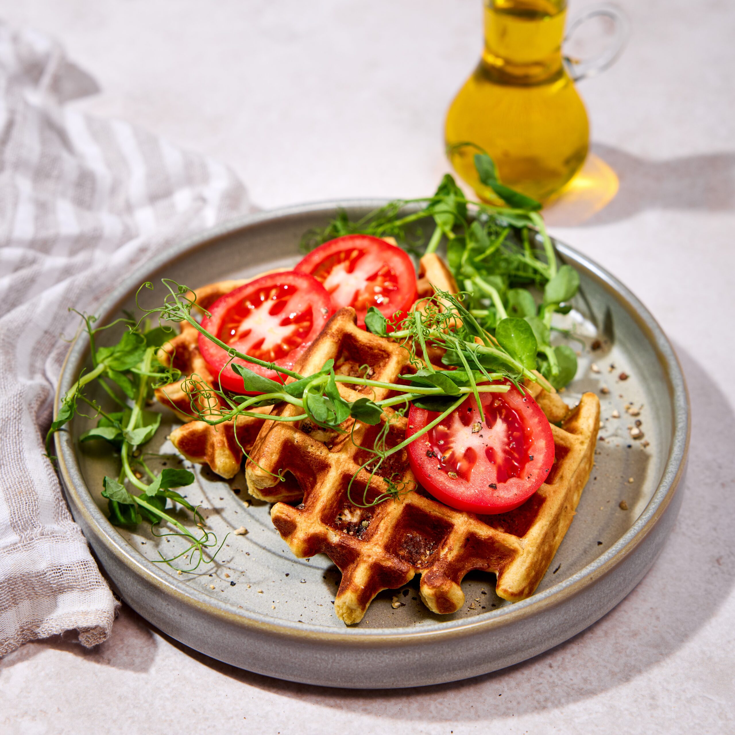 - Kepkite vaflius įkaitintoje vaflinėje, kol jie taps auksinės spalvos, traškūs išorėje ir minkšti viduje.