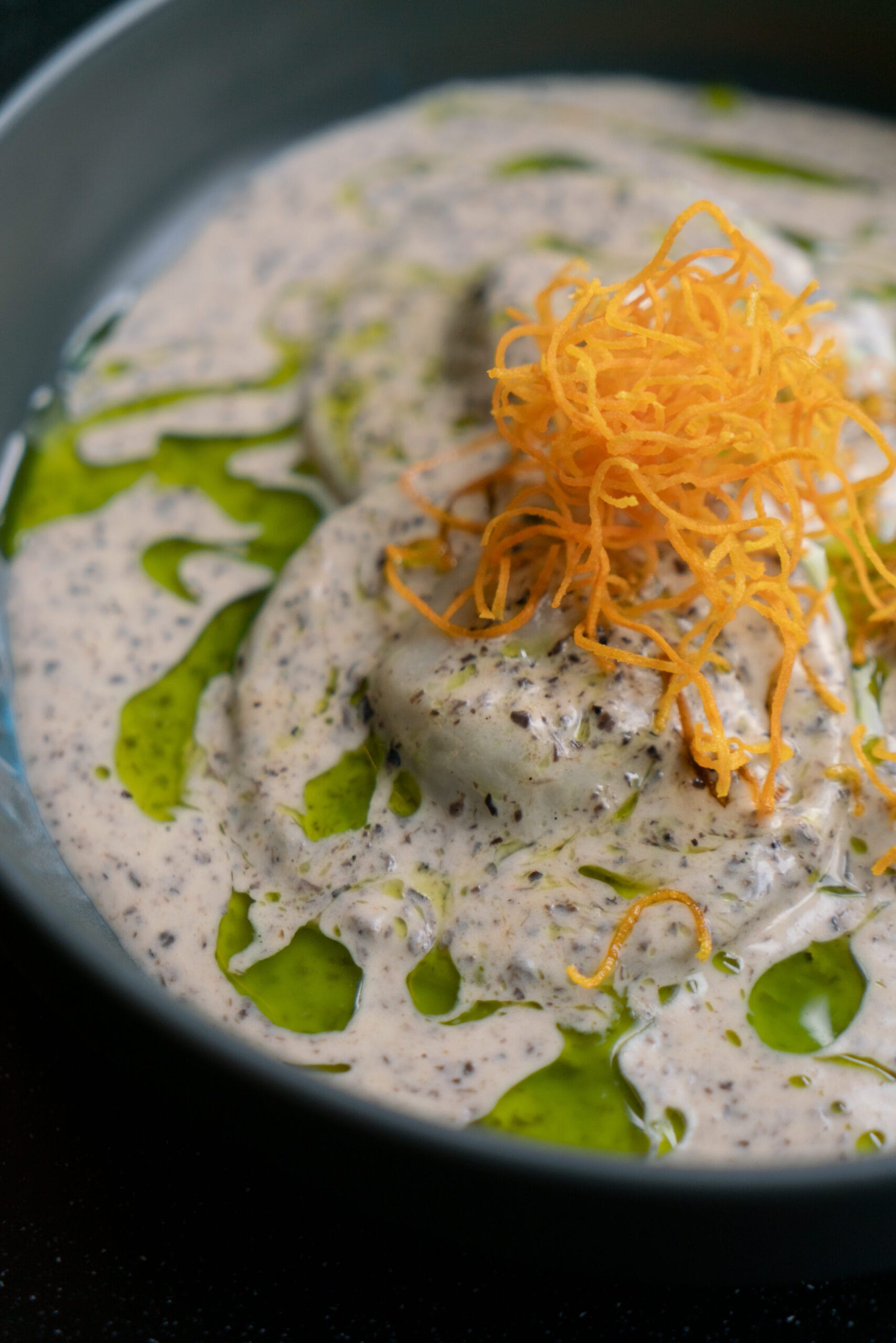 • Ravioli su grybais, grietinėlės padažu ir porų aliejumi (mūsų top!)